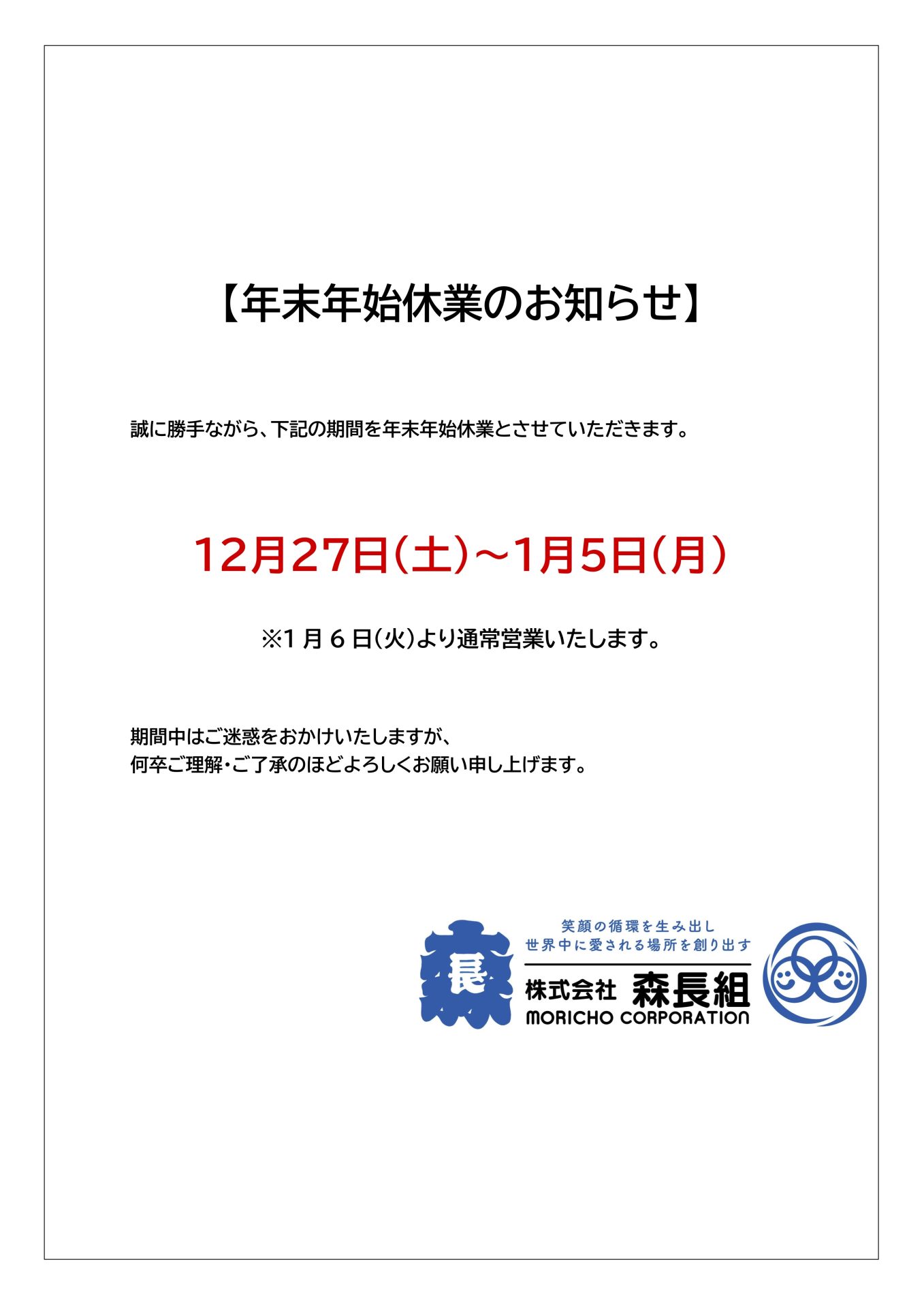 誠に勝手ながら、当社の年末年始休業につきまして、添付の通りとさせていただきます。